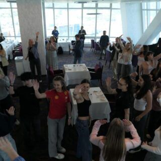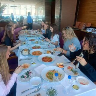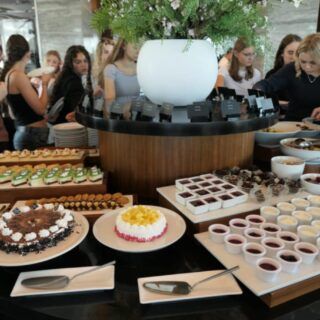 Ještě než jsme ale dorazili do místa konání dnešního koncertu, zastavili jsme se na oběd ve městě Yeosu, které je považováno za jedno z nejhezčích v Koreji. I oběd pokračoval v intencích celého dopoledne – v luxusním hotelu u areálu Expo 2012 jsme vyjeli do 26. patra a kromě italských specialit jsme měli možnost si pochutnávat i na vynikajících salátech a dortících. Málo platné, asi přijedeme domů o něco těžší… 🙂 Panoramatický výhled z balkonu restaurace byl úžasný. Jako poděkování jsme hostitelům udělali „flash mob“ s písní Les Champs Elysées – v podání našich dětí je to s tancem opravdu paráda.