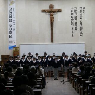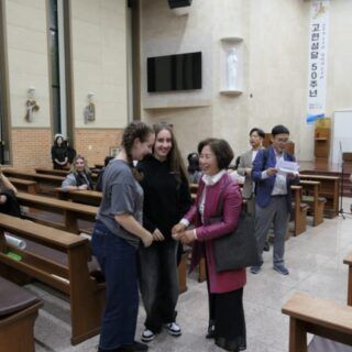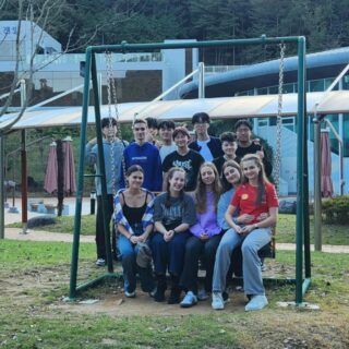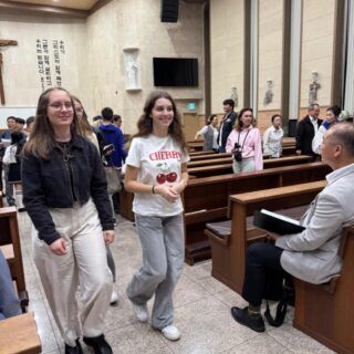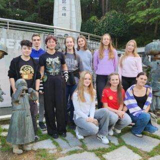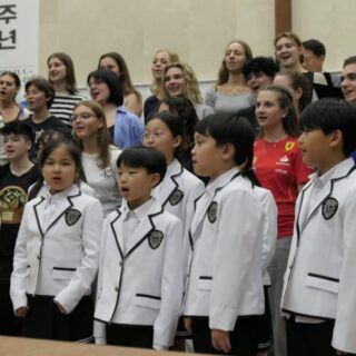 Po příjezdu na ostrov Goeje jsme si ještě prohlédli areál zajateckého tábora z Korejské války a pak jsme se již vydali za našimi hostiteli. Dnešní koncert se koná v kostele, musíme tedy vyzkoušet techniku – Evička hraje na elektronické piano napojené na velké reproduktory visící seshora, což je pro nás trochu neobvyklé, ale nakonec se vše podaří a my dnes poprvé máme v programu kromě obvyklých skladeb i novinku z našeho repertoáru – Bohemian Rhapsody se skvělým sólem Terezky. Je to také malý hudební dárek pro pana sbormistra Cho, který při minulém turné tuto skladbu zpíval na koncertu. Po zkoušce si hostitelské rodiny rozebírají severáčkovské děti a společně jedou na večeři, my dospělí máme v restauraci připravený bohatý stůl s typickými korejskými pochutinami, jako hlavní chod se podává makrela. Je výtečná, jen její vykostění pouze za pomoci hůlek vyžaduje opravdu velkou zručnost😊. Koncert začíná v půl osmé, některé děti doslova dobíhají pár minut před začátkem, takže znovu posouváme hranice rekordu v rychlosti oblékání kroje 😊 (4 minuty). Naštěstí jako první zpívá korejský dětský sbor, stihnou to tedy nakonec všichni a první půlka koncertu může začít. Kostel je téměř plný, diváci velmi nadšeně aplaudují a po malém intermezzu, které vyplní smíšený sbor Sanctus, nastupují naše děti na folklórní část programu. Vše krásně vyšlo, musím tu vyzdvihnout naši výbornou instrumentální sekci, která je již skvěle sehraná – Tonička na housle, Šáryn na flétny, Jonáš na bicí nástroje. Jsme moc rádi, že máme ve sboru tak talentované muzikanty. Na závěr koncertu se k nám přidává celý korejský sbor a zpíváme společně Urinen a Barami, je to zážitek pro všechny zúčastněné. Děti po koncertě odcházejí do rodin a my se těšíme, co nám budou zítra vyprávět.