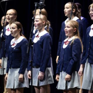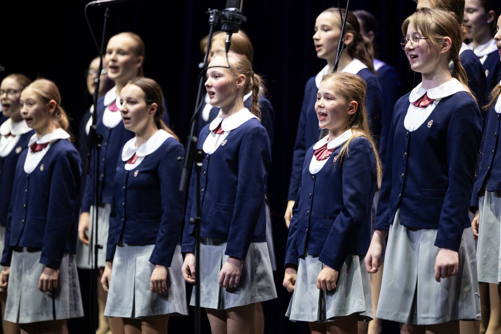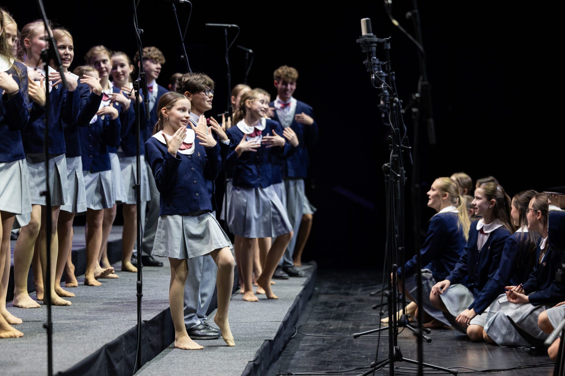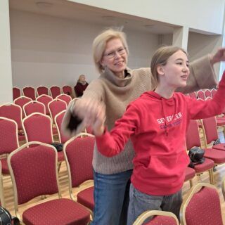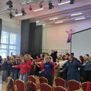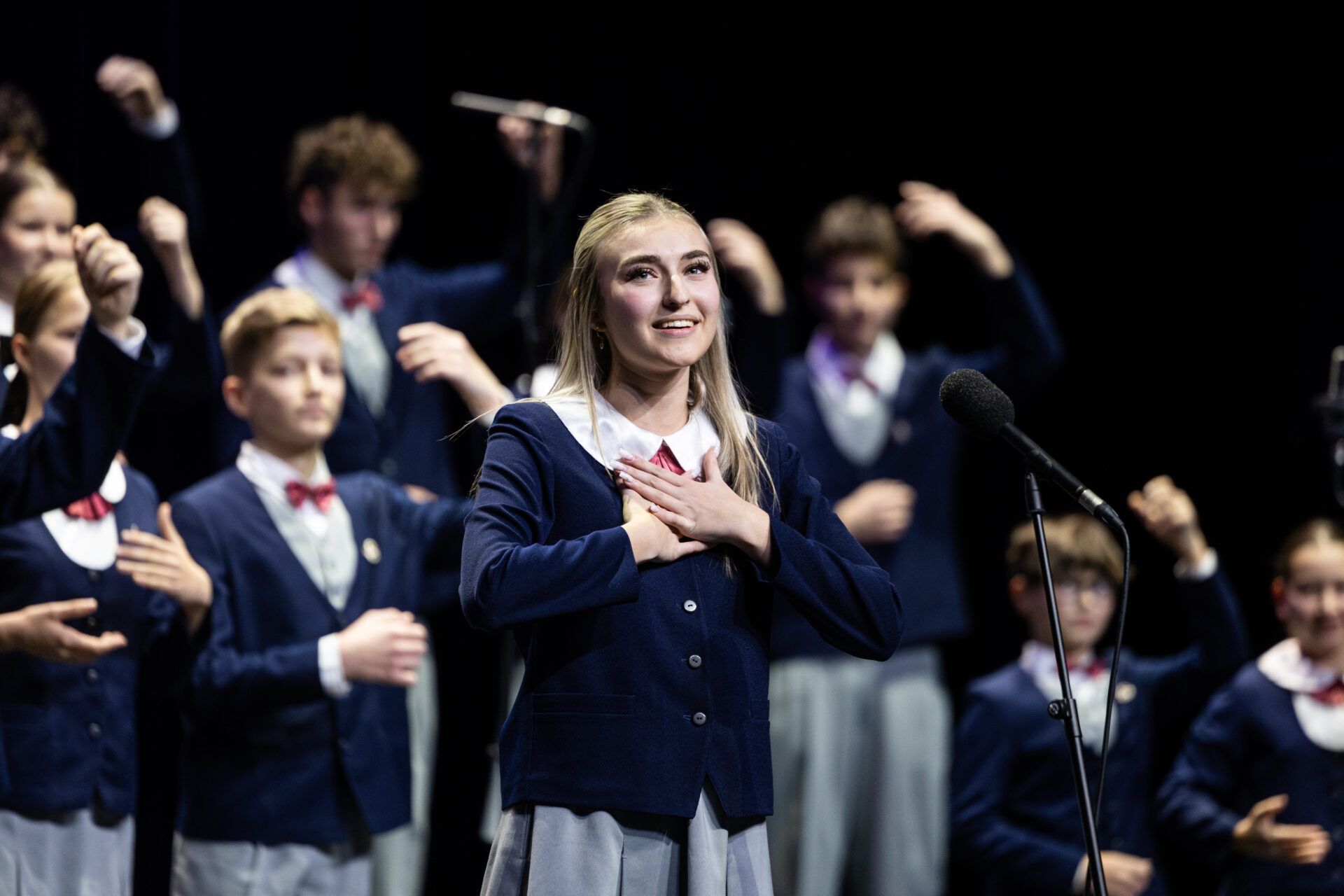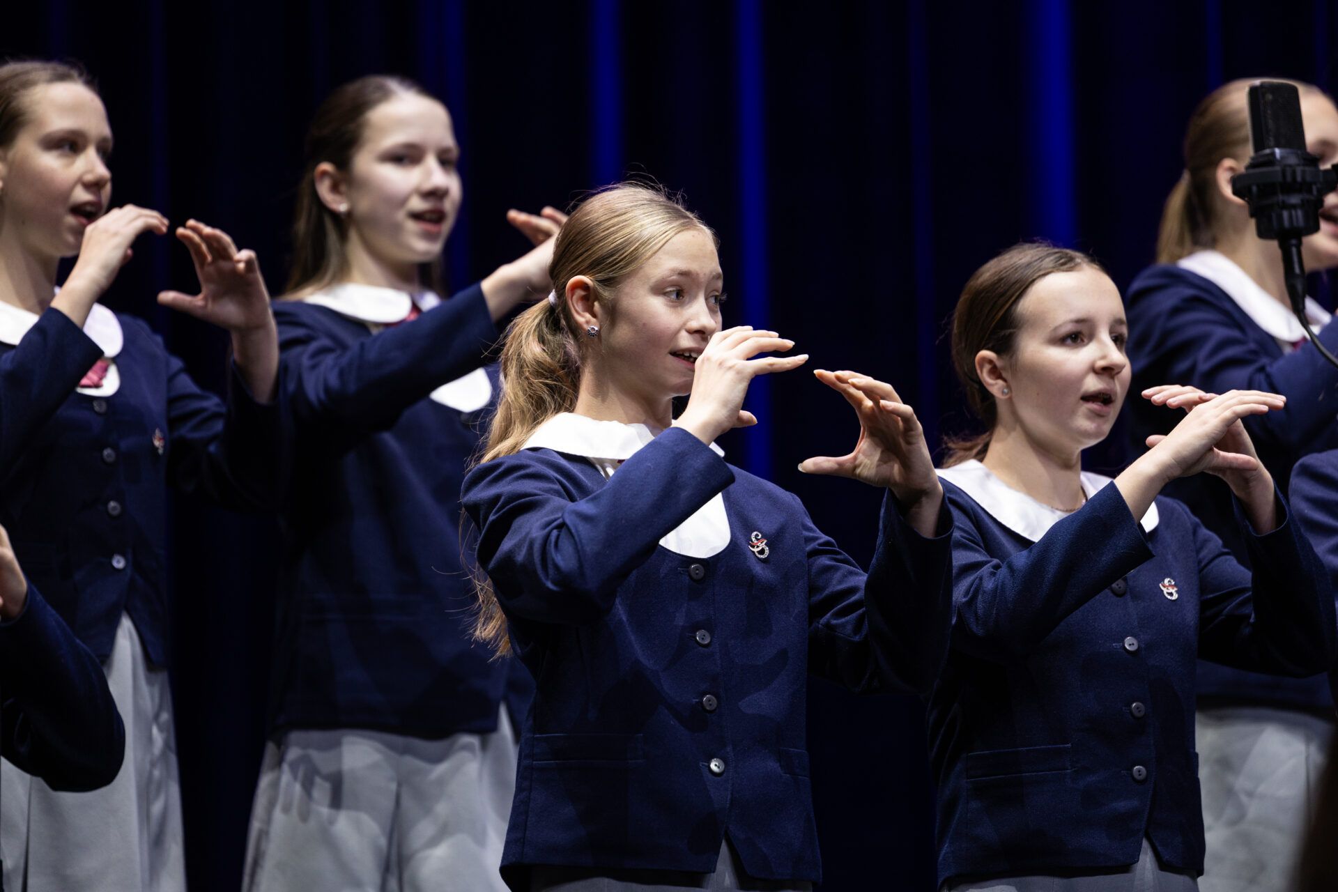 Sobotní ráno nás přivítalo sluníčkem a opět jsme se sešli v hudební škole sboru Dagilélis na dopolední workshop se sbormistry a učiteli, tentokrát jsme je zapojili do duchovního chorálu Veni, Creator Spiritus, který si společně s našimi dětmi mohli po nacvičení zazpívat ve všech možných variacích. Pro odlehčení jsme na závěr zvolili Broučkovskou mazurku, která stejně jako v Koreji, vykouzlila i zde v Litvě spoustu úsměvů na tvářích našich hostů, zejména poté, co si pro ně do hlediště došly severáčkovské děti a vyzvaly je ke společnému tanci. Ve fotogalerii najdete důkaz, že to bylo oboustranně velmi příjemně strávené dopoledne. Po workshopu jsme měli ještě čas navštívit prodejnu místního výrobce něčeho velmi chutného (nesmím ani naznačovat😊, budou to určitě dárečky…) a poté jsme se přesunuli do sálu, kde se bude odpoledne konat hlavní koncert celého festivalu. Vyzkoušeli jsme si na jevišti vše potřebné a poté jsme se vydali na oběd do oblíbené restaurace Arkos. Nachází se uprostřed pěší zóny se spoustou obchůdků a kaváren, volný čas po obědě jsme tedy využili k příjemné procházce po městě. Před samotným koncertem jsme si ještě v hudební škole vyzkoušeli něco málo z choreografií a pak jsme se spolu s ostatními sbory přesunuli do koncertního sálu. V programu vystoupilo celkem šest sborů, na úvod se představil domácí sbor Dagilélis čítající bezmála sto zpěváků ve věku od 10 do 19 let, po nich následovaly další litevské sbory, Severáček byl jako host festivalu na programu poslední. Naše děti předvedly ve dvacetiminutovém okénku lidovou píseň Ej, děvča orešanské, poté oblíbenou Zkoušku na koncert, dále cyklus Písničky bez deštníku, suitu Už ho vedou Martina a na závěr naši novou hitovku Les Champs-Elysées. Vystoupení se jim moc povedlo a velký aplaus a ovace ve stoje byly zcela zasloužené. Chtěla bych ještě pochválit všechny sólisty – Adélku P. ve Zkoušce na koncert, Matyáše a Aničku v Ej, lásko, Majdu K., Aničku T., Amálku M. a Adélku P. v Už ho vedou, Martina a zejména Terezku B. a Lucinku Š. za přednes textu v litevštině a Šáryna za doprovod na flétny a bicí nástroje. Jsme na naše děti pyšné, jak dobře zvládly takto důležitý koncert a jak skvěle tím reprezentovaly celý Severáček. Věříme, že si v rodinách užijí krásný večer a nedělní volné dopoledne, však si ho zaslouží.