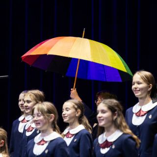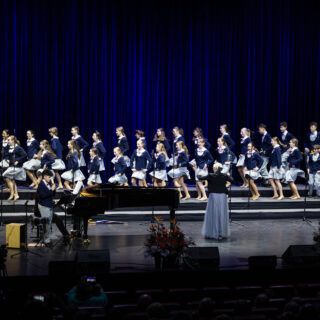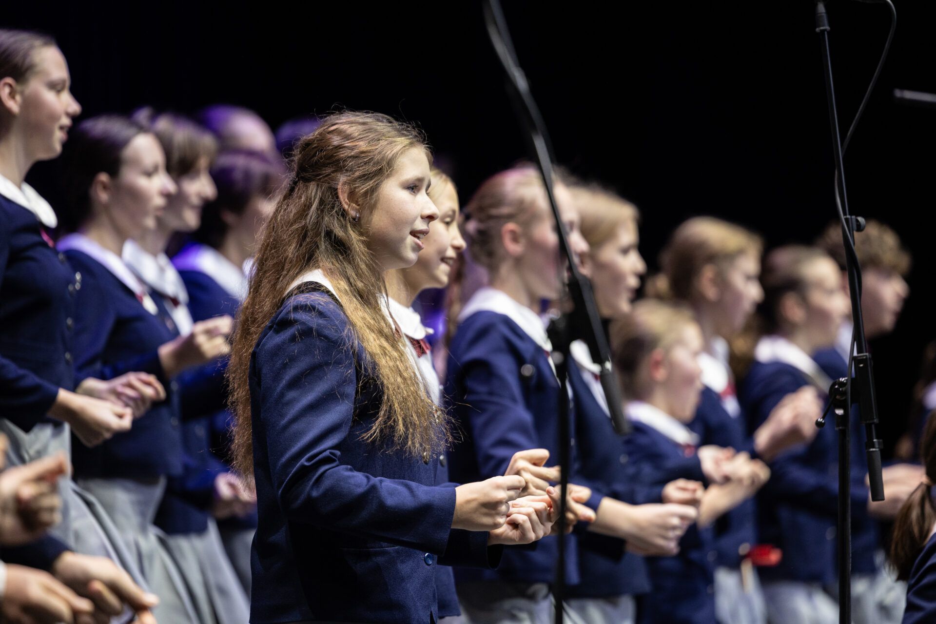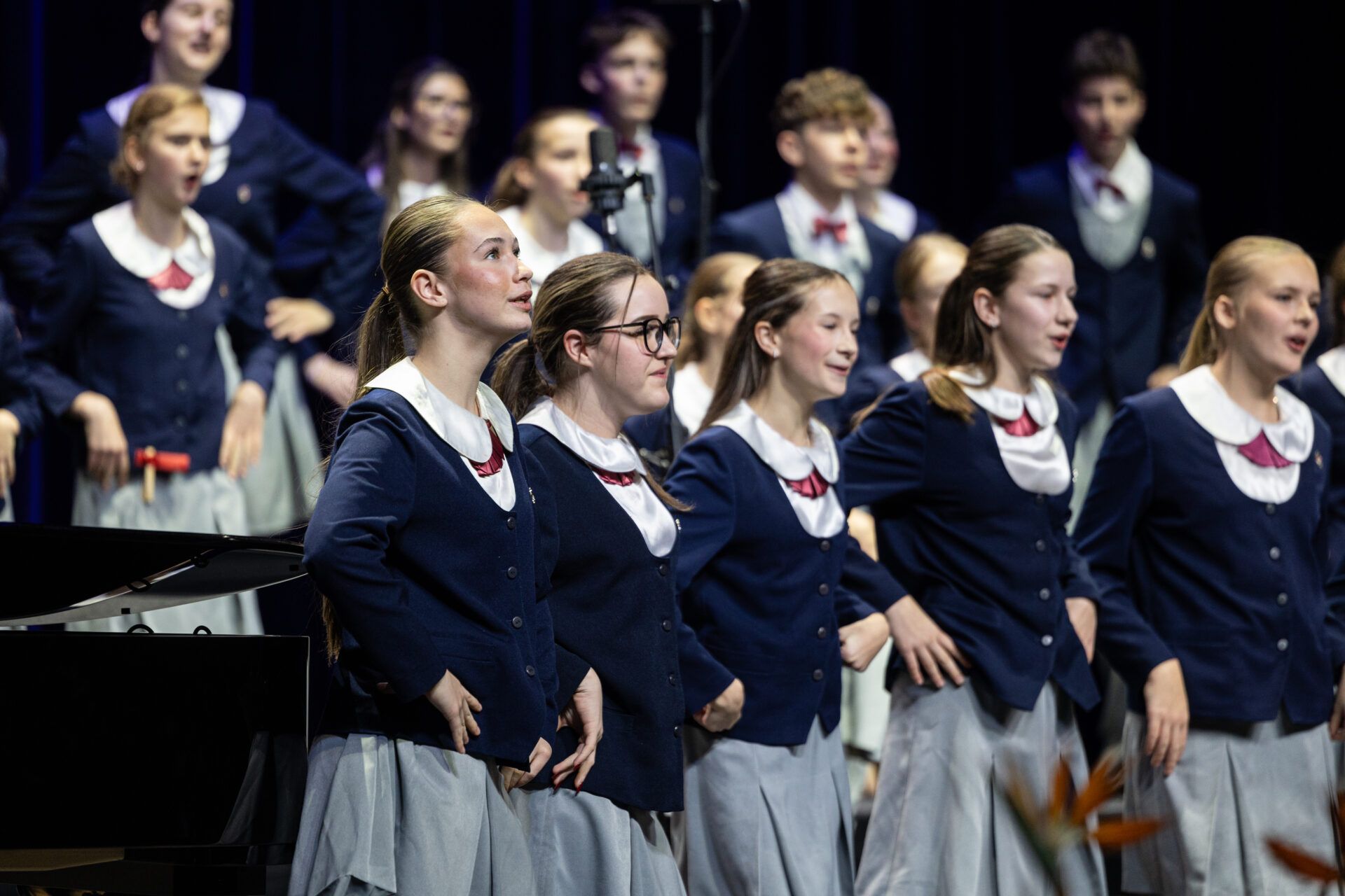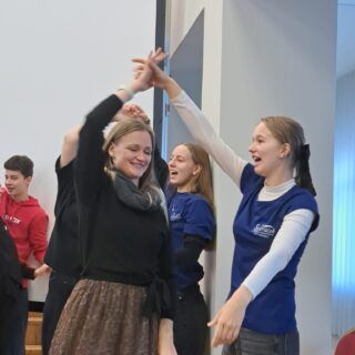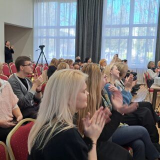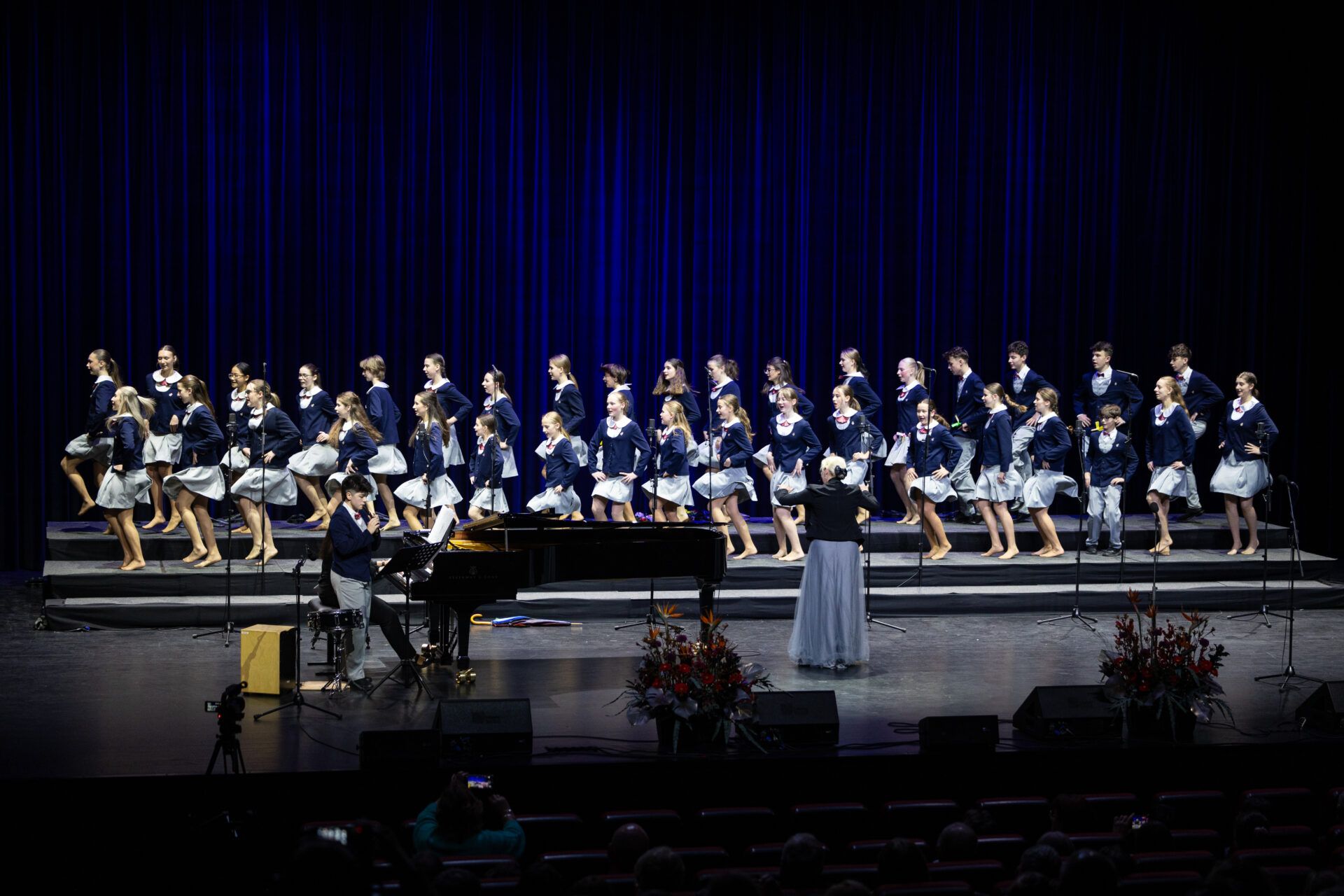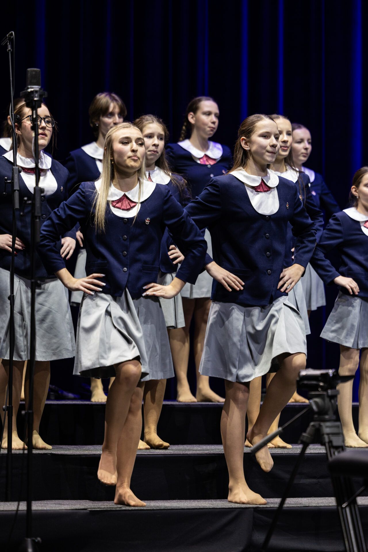 Sobotní ráno nás přivítalo sluníčkem a opět jsme se sešli v hudební škole sboru Dagilélis na dopolední workshop se sbormistry a učiteli, tentokrát jsme je zapojili do duchovního chorálu Veni, Creator Spiritus, který si společně s našimi dětmi mohli po nacvičení zazpívat ve všech možných variacích. Pro odlehčení jsme na závěr zvolili Broučkovskou mazurku, která stejně jako v Koreji, vykouzlila i zde v Litvě spoustu úsměvů na tvářích našich hostů, zejména poté, co si pro ně do hlediště došly severáčkovské děti a vyzvaly je ke společnému tanci. Ve fotogalerii najdete důkaz, že to bylo oboustranně velmi příjemně strávené dopoledne. Po workshopu jsme měli ještě čas navštívit prodejnu místního výrobce něčeho velmi chutného (nesmím ani naznačovat😊, budou to určitě dárečky…) a poté jsme se přesunuli do sálu, kde se bude odpoledne konat hlavní koncert celého festivalu. Vyzkoušeli jsme si na jevišti vše potřebné a poté jsme se vydali na oběd do oblíbené restaurace Arkos. Nachází se uprostřed pěší zóny se spoustou obchůdků a kaváren, volný čas po obědě jsme tedy využili k příjemné procházce po městě. Před samotným koncertem jsme si ještě v hudební škole vyzkoušeli něco málo z choreografií a pak jsme se spolu s ostatními sbory přesunuli do koncertního sálu. V programu vystoupilo celkem šest sborů, na úvod se představil domácí sbor Dagilélis čítající bezmála sto zpěváků ve věku od 10 do 19 let, po nich následovaly další litevské sbory, Severáček byl jako host festivalu na programu poslední. Naše děti předvedly ve dvacetiminutovém okénku lidovou píseň Ej, děvča orešanské, poté oblíbenou Zkoušku na koncert, dále cyklus Písničky bez deštníku, suitu Už ho vedou Martina a na závěr naši novou hitovku Les Champs-Elysées. Vystoupení se jim moc povedlo a velký aplaus a ovace ve stoje byly zcela zasloužené. Chtěla bych ještě pochválit všechny sólisty – Adélku P. ve Zkoušce na koncert, Matyáše a Aničku v Ej, lásko, Majdu K., Aničku T., Amálku M. a Adélku P. v Už ho vedou, Martina a zejména Terezku B. a Lucinku Š. za přednes textu v litevštině a Šáryna za doprovod na flétny a bicí nástroje. Jsme na naše děti pyšné, jak dobře zvládly takto důležitý koncert a jak skvěle tím reprezentovaly celý Severáček. Věříme, že si v rodinách užijí krásný večer a nedělní volné dopoledne, však si ho zaslouží.