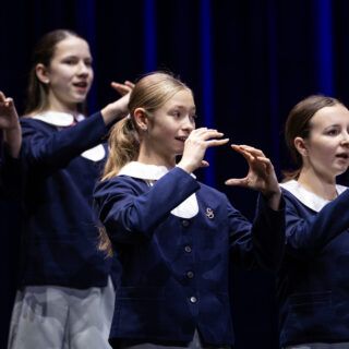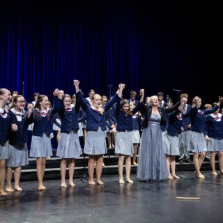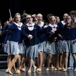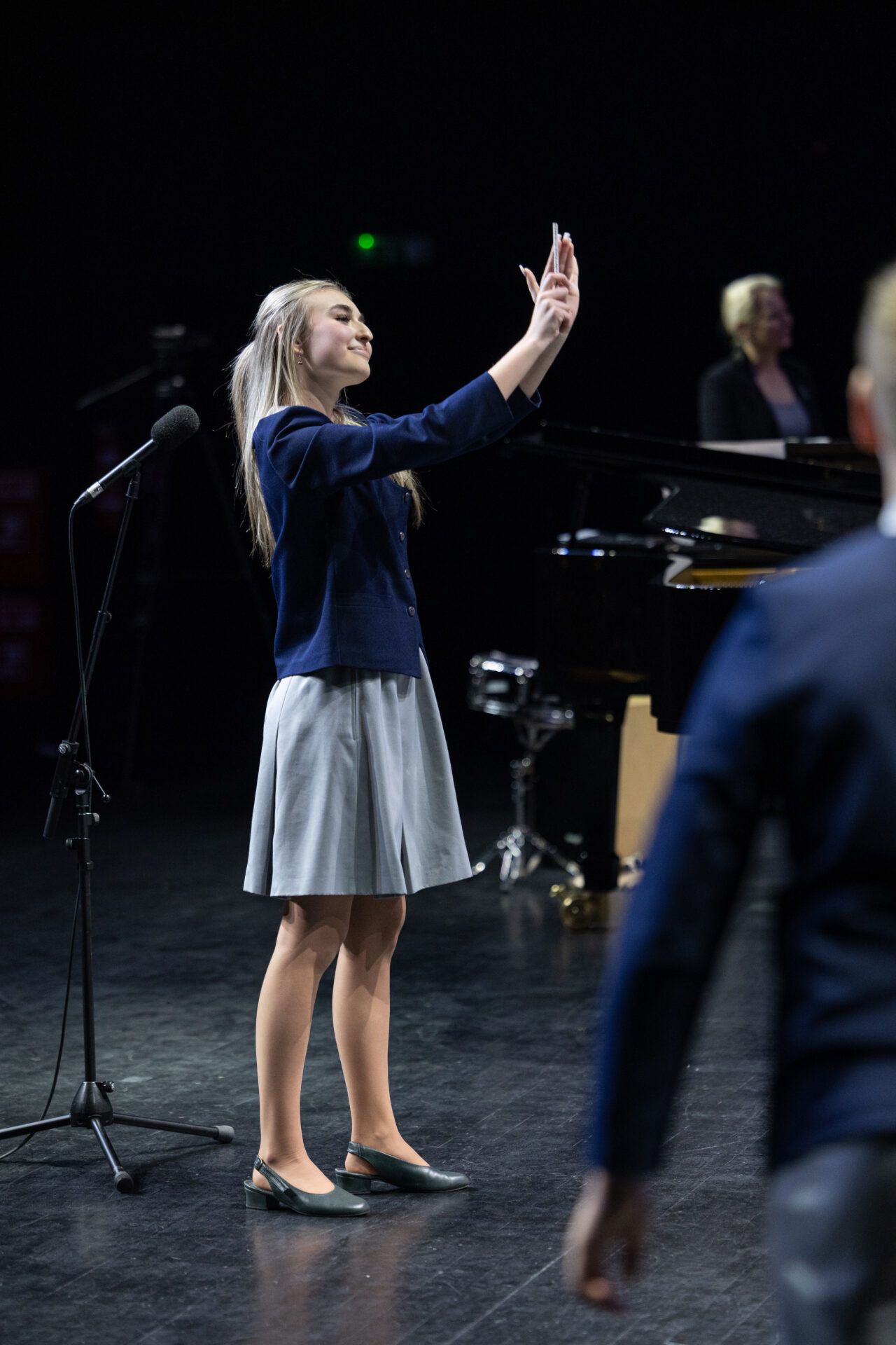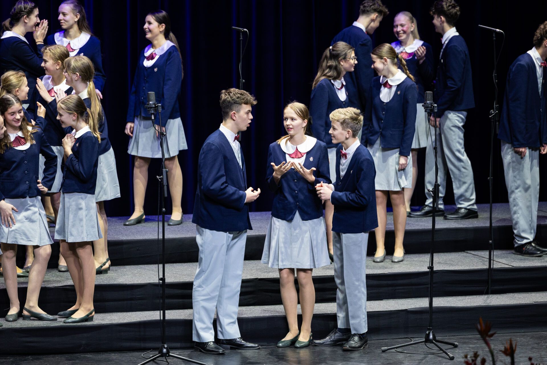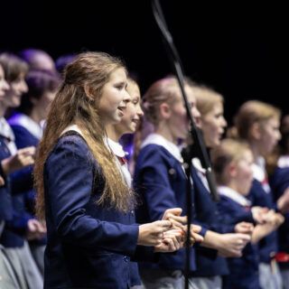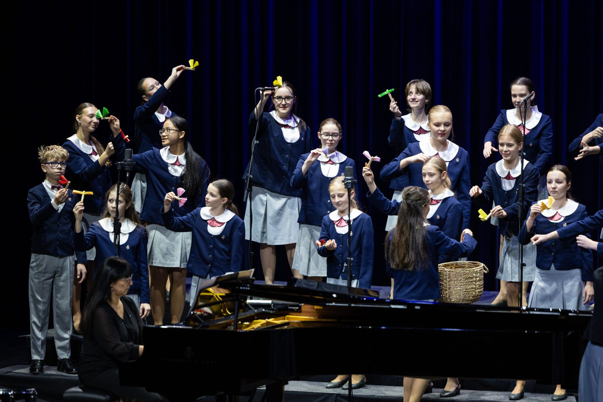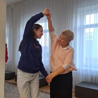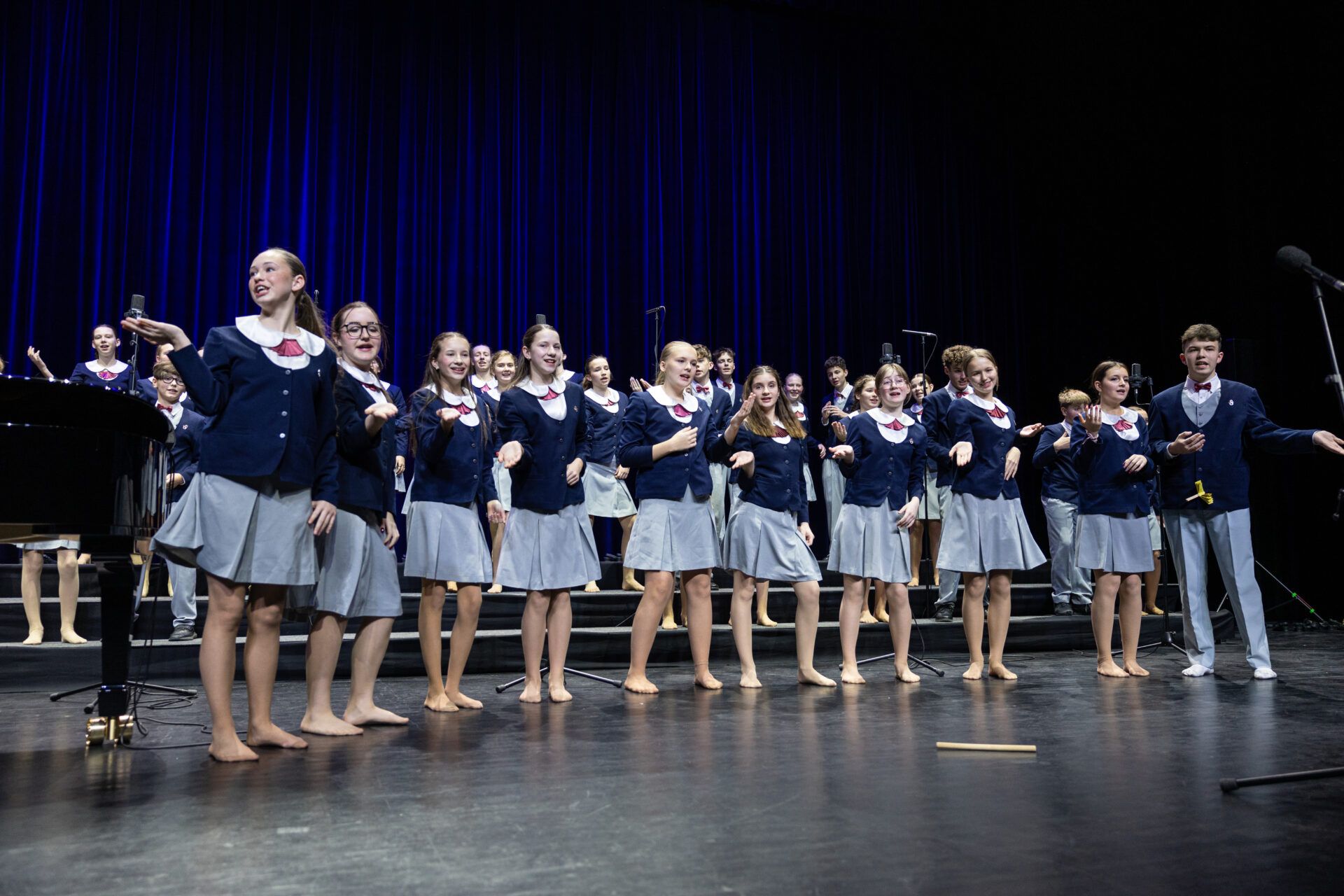 Sobotní ráno nás přivítalo sluníčkem a opět jsme se sešli v hudební škole sboru Dagilélis na dopolední workshop se sbormistry a učiteli, tentokrát jsme je zapojili do duchovního chorálu Veni, Creator Spiritus, který si společně s našimi dětmi mohli po nacvičení zazpívat ve všech možných variacích. Pro odlehčení jsme na závěr zvolili Broučkovskou mazurku, která stejně jako v Koreji, vykouzlila i zde v Litvě spoustu úsměvů na tvářích našich hostů, zejména poté, co si pro ně do hlediště došly severáčkovské děti a vyzvaly je ke společnému tanci. Ve fotogalerii najdete důkaz, že to bylo oboustranně velmi příjemně strávené dopoledne. Po workshopu jsme měli ještě čas navštívit prodejnu místního výrobce něčeho velmi chutného (nesmím ani naznačovat😊, budou to určitě dárečky…) a poté jsme se přesunuli do sálu, kde se bude odpoledne konat hlavní koncert celého festivalu. Vyzkoušeli jsme si na jevišti vše potřebné a poté jsme se vydali na oběd do oblíbené restaurace Arkos. Nachází se uprostřed pěší zóny se spoustou obchůdků a kaváren, volný čas po obědě jsme tedy využili k příjemné procházce po městě. Před samotným koncertem jsme si ještě v hudební škole vyzkoušeli něco málo z choreografií a pak jsme se spolu s ostatními sbory přesunuli do koncertního sálu. V programu vystoupilo celkem šest sborů, na úvod se představil domácí sbor Dagilélis čítající bezmála sto zpěváků ve věku od 10 do 19 let, po nich následovaly další litevské sbory, Severáček byl jako host festivalu na programu poslední. Naše děti předvedly ve dvacetiminutovém okénku lidovou píseň Ej, děvča orešanské, poté oblíbenou Zkoušku na koncert, dále cyklus Písničky bez deštníku, suitu Už ho vedou Martina a na závěr naši novou hitovku Les Champs-Elysées. Vystoupení se jim moc povedlo a velký aplaus a ovace ve stoje byly zcela zasloužené. Chtěla bych ještě pochválit všechny sólisty – Adélku P. ve Zkoušce na koncert, Matyáše a Aničku v Ej, lásko, Majdu K., Aničku T., Amálku M. a Adélku P. v Už ho vedou, Martina a zejména Terezku B. a Lucinku Š. za přednes textu v litevštině a Šáryna za doprovod na flétny a bicí nástroje. Jsme na naše děti pyšné, jak dobře zvládly takto důležitý koncert a jak skvěle tím reprezentovaly celý Severáček. Věříme, že si v rodinách užijí krásný večer a nedělní volné dopoledne, však si ho zaslouží.