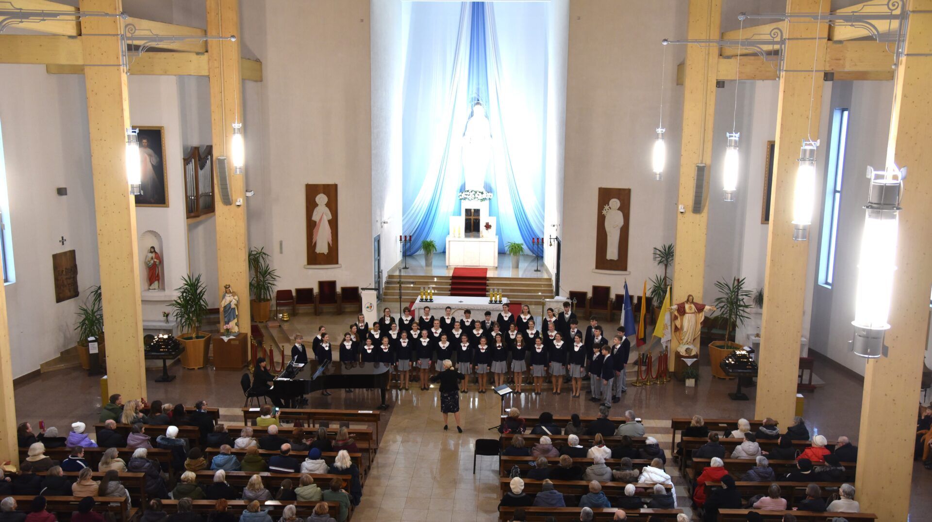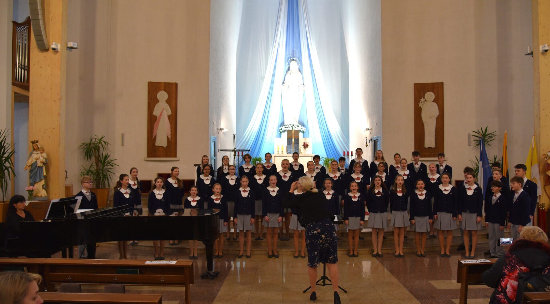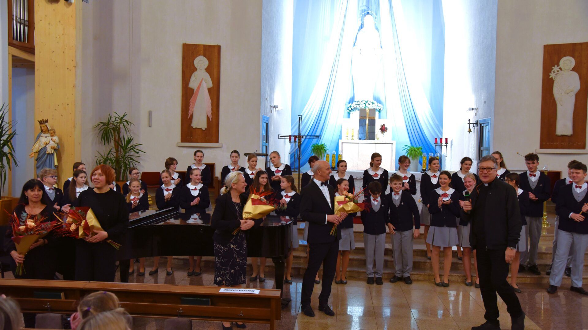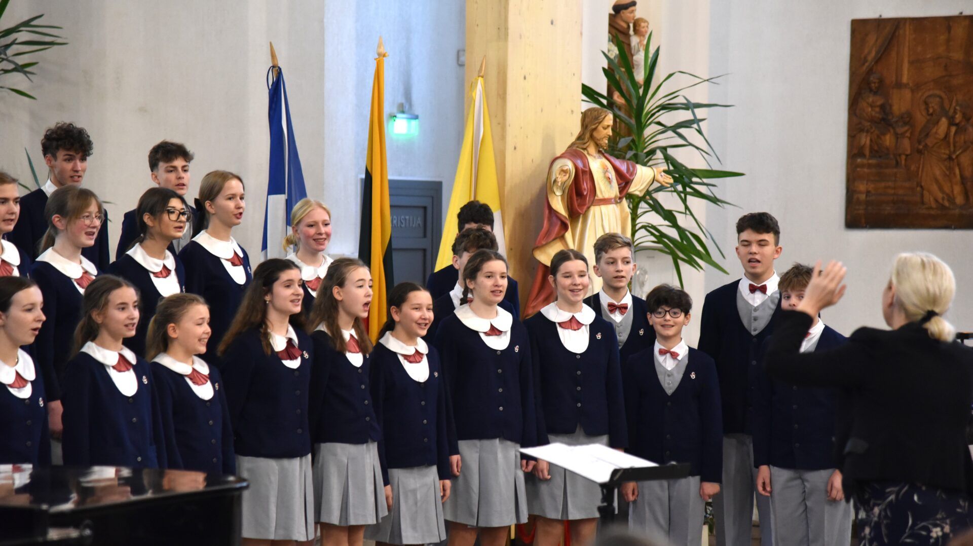 Náš zájezd se pomalu chýlí ke konci a my tu máme poslední festivalový den. Celé nedělní dopoledne strávily děti se svými hostitelskými rodinami, někde se šlo do ZOO, muzea či nakupovat, jinde se hrály deskové hry, někteří chlapci si prý raději dopřáli vydatný spánek😊. Po obědě jsme se všichni sešli u katolického kostela Mergelés Marijos v Šiauliai (mimochodem zkuste si to říct třikrát za sebou a máte skvělý jazykolam, ve skutečnosti se to vyslovuje „Šolé“), kde nás čekal již poslední koncert. Kromě Severáčku vystoupili i chlapci a mladí muži ze sboru Dagilélis. Oba dva programy měly duchovní charakter, sóla v Truvérské mši Petra Ebena měla zpívala tři nejstarší děvčata Adélka P., Anička T. a Majda K., byl to pro ně zároveň úplně poslední zájezdový koncert se Severáčkem. Ještě si s námi zazpívají v sobotu na Slavnostním koncertu v Divadle F. X. Šaldy. Kostel byl zaplněný do posledního místa a publikum opět odměnilo naše děti bouřlivým potleskem ve stoje. Byl to jeden ze zájezdových momentů, které si budeme ještě dlouho pamatovat. Zejména ukolébavka z opery Brundibár zněla v této chrámové akustice výjimečně průzračně. Po koncertu nám naši hostitelé domluvili bowling a pizzu v nedalekém nákupním centru, děti z obou sborů se tedy mohly dosytosti vydovádět na dráze a myslím, že to byl krásný závěr celého pobytu v Šiauliai.