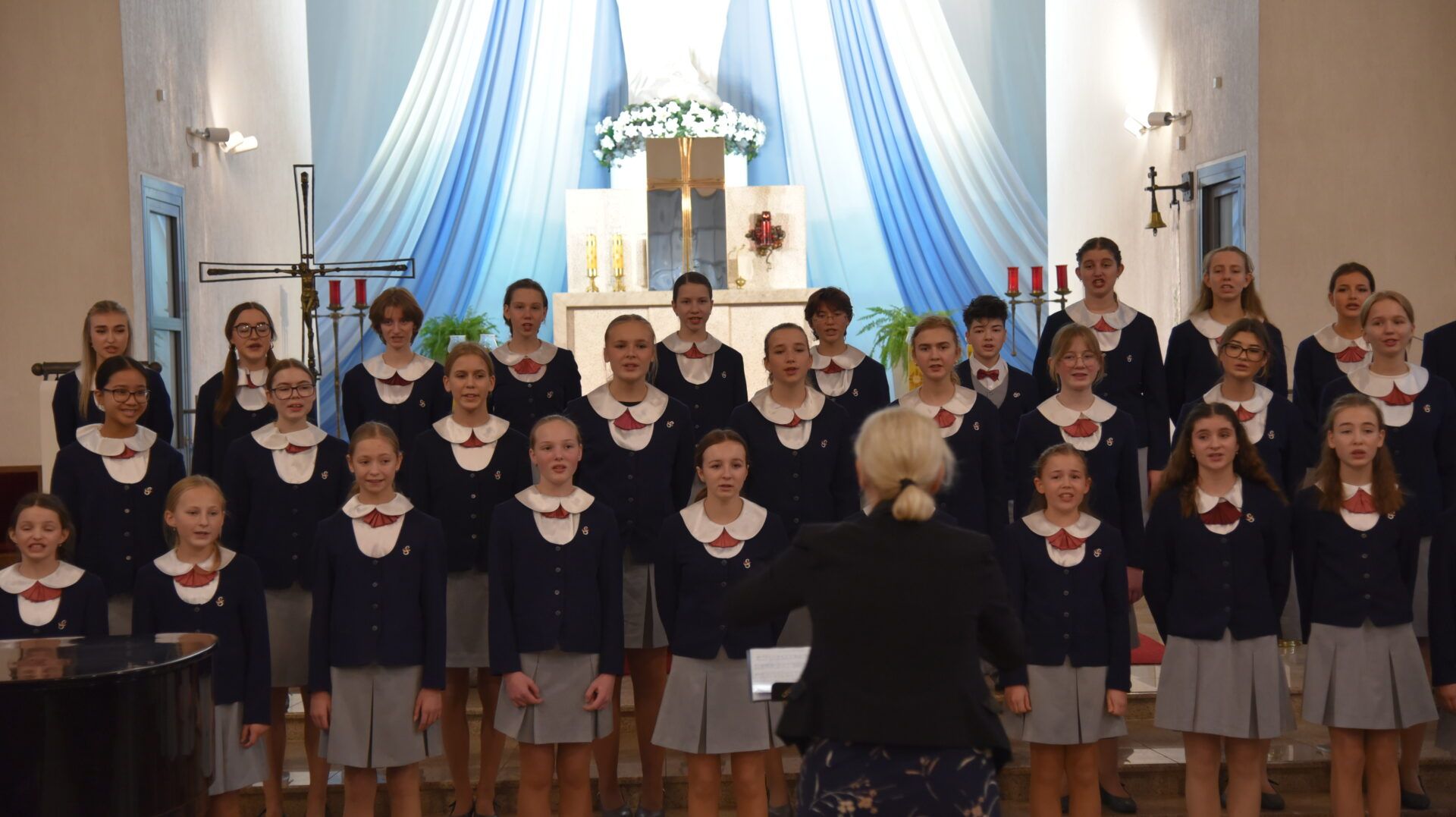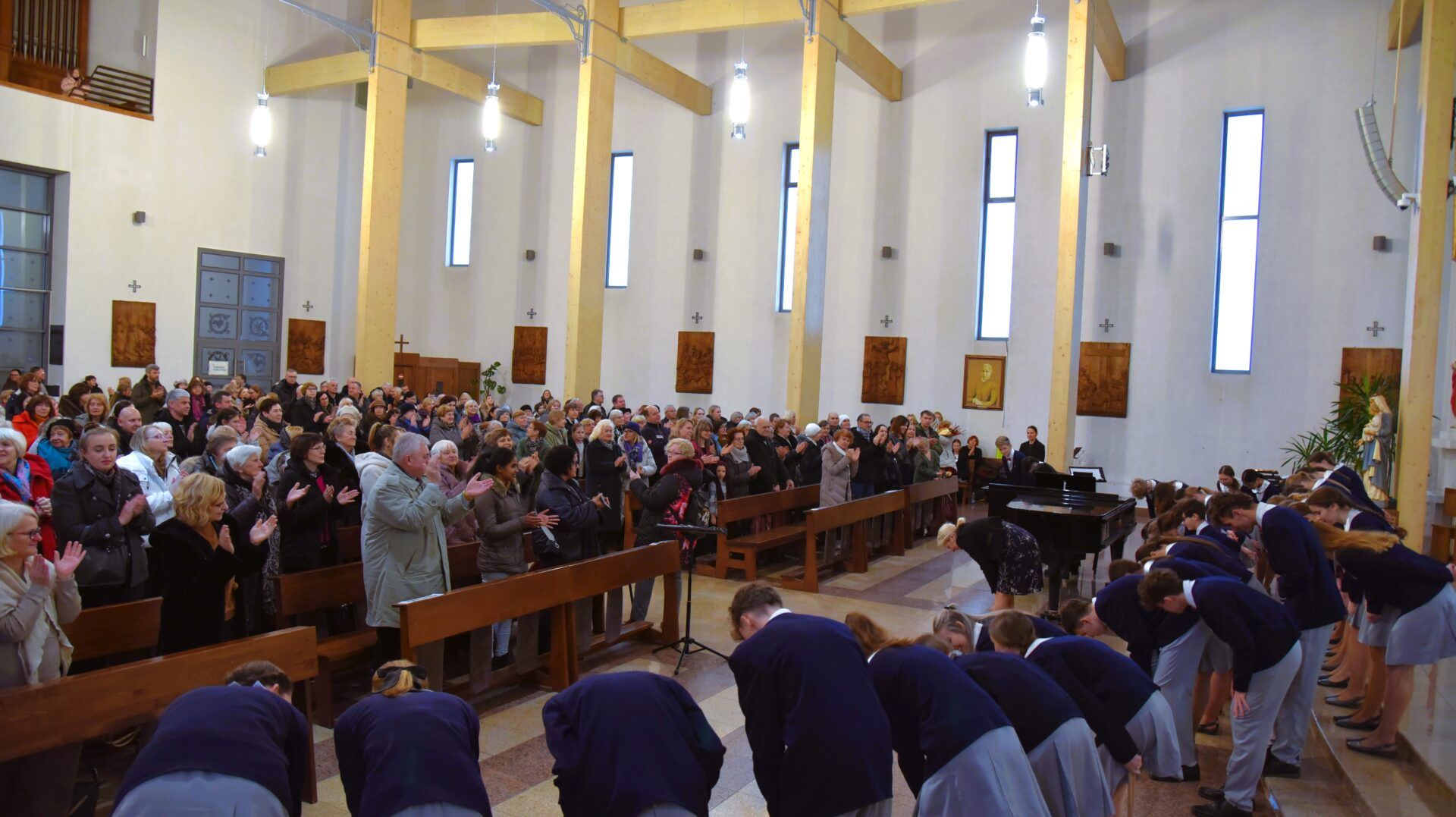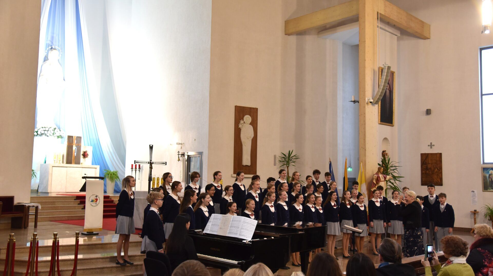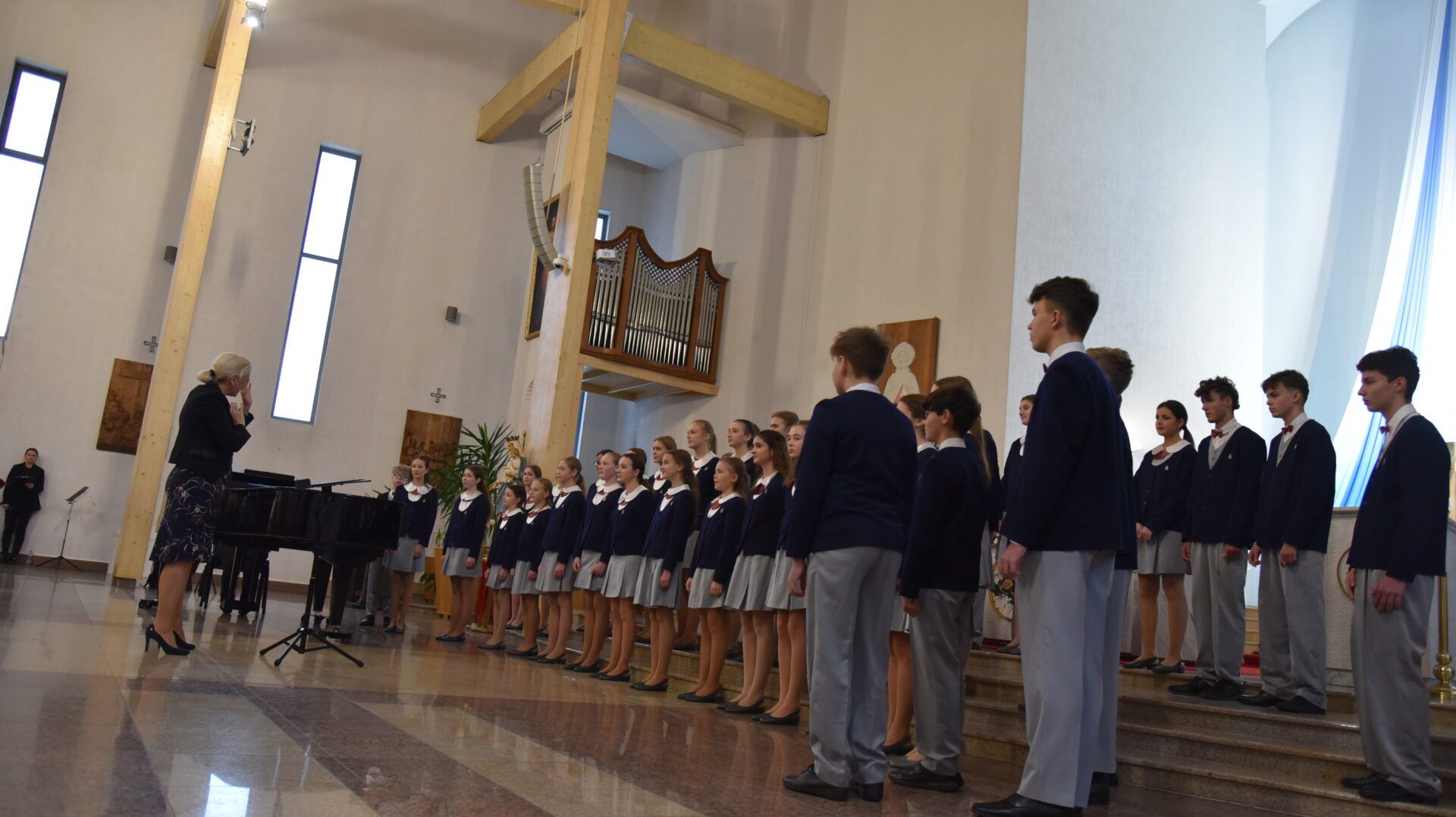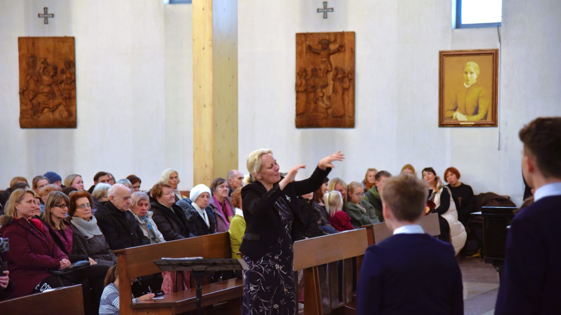 Náš zájezd se pomalu chýlí ke konci a my tu máme poslední festivalový den. Celé nedělní dopoledne strávily děti se svými hostitelskými rodinami, někde se šlo do ZOO, muzea či nakupovat, jinde se hrály deskové hry, někteří chlapci si prý raději dopřáli vydatný spánek😊. Po obědě jsme se všichni sešli u katolického kostela Mergelés Marijos v Šiauliai (mimochodem zkuste si to říct třikrát za sebou a máte skvělý jazykolam, ve skutečnosti se to vyslovuje „Šolé“), kde nás čekal již poslední koncert. Kromě Severáčku vystoupili i chlapci a mladí muži ze sboru Dagilélis. Oba dva programy měly duchovní charakter, sóla v Truvérské mši Petra Ebena měla zpívala tři nejstarší děvčata Adélka P., Anička T. a Majda K., byl to pro ně zároveň úplně poslední zájezdový koncert se Severáčkem. Ještě si s námi zazpívají v sobotu na Slavnostním koncertu v Divadle F. X. Šaldy. Kostel byl zaplněný do posledního místa a publikum opět odměnilo naše děti bouřlivým potleskem ve stoje. Byl to jeden ze zájezdových momentů, které si budeme ještě dlouho pamatovat. Zejména ukolébavka z opery Brundibár zněla v této chrámové akustice výjimečně průzračně. Po koncertu nám naši hostitelé domluvili bowling a pizzu v nedalekém nákupním centru, děti z obou sborů se tedy mohly dosytosti vydovádět na dráze a myslím, že to byl krásný závěr celého pobytu v Šiauliai.
