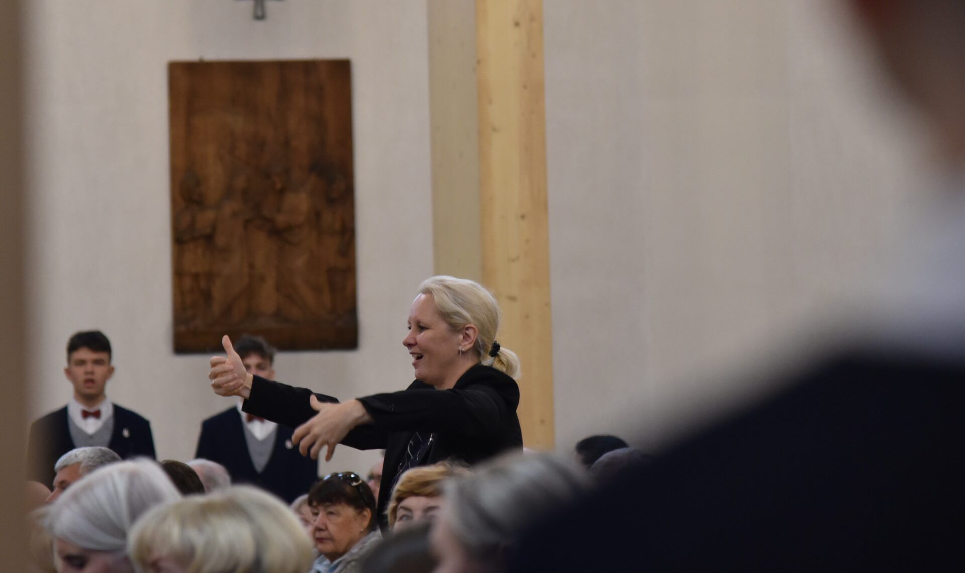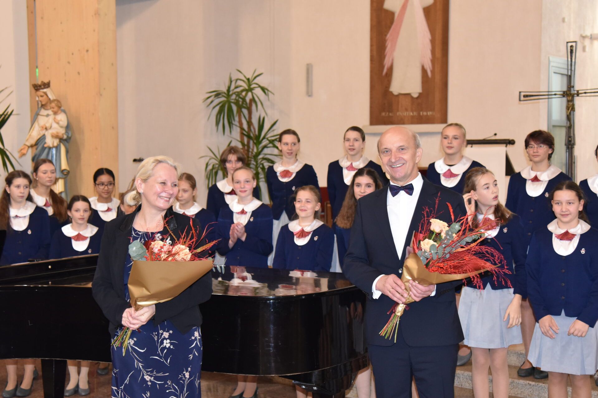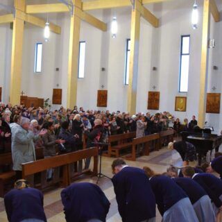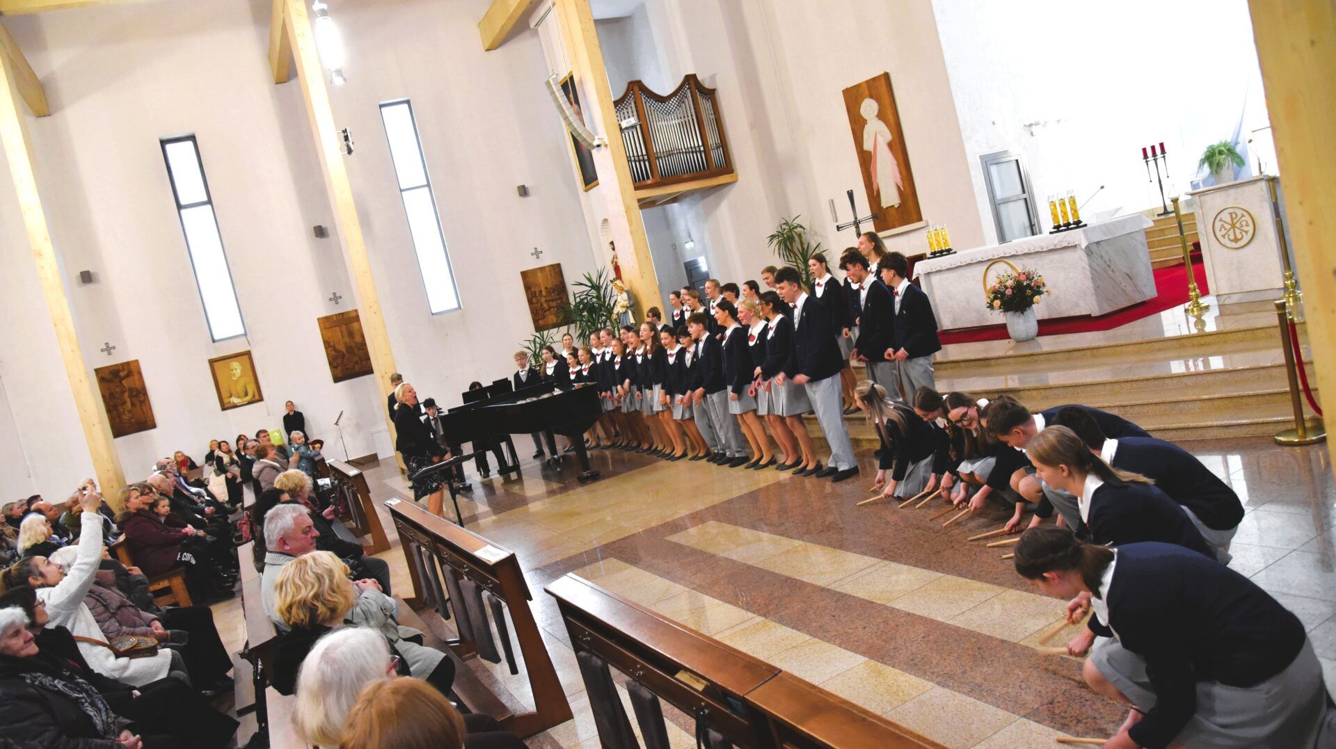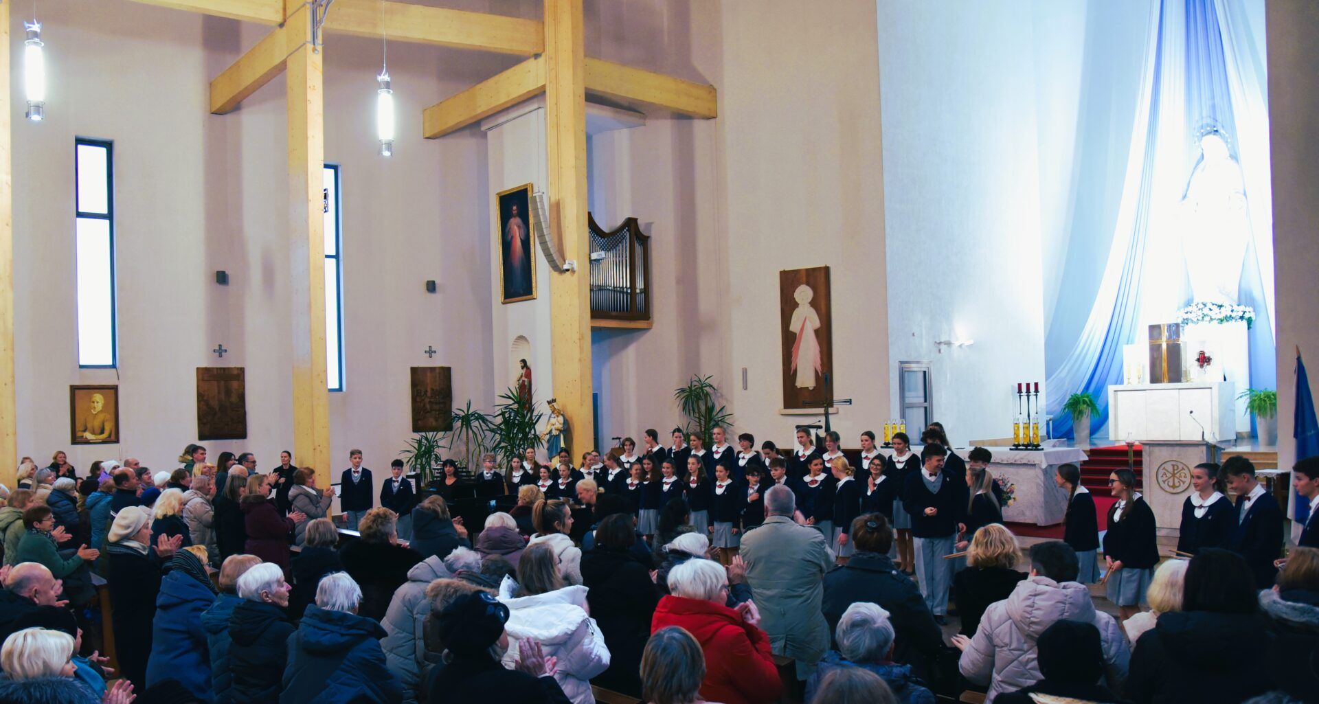 Náš zájezd se pomalu chýlí ke konci a my tu máme poslední festivalový den. Celé nedělní dopoledne strávily děti se svými hostitelskými rodinami, někde se šlo do ZOO, muzea či nakupovat, jinde se hrály deskové hry, někteří chlapci si prý raději dopřáli vydatný spánek😊. Po obědě jsme se všichni sešli u katolického kostela Mergelés Marijos v Šiauliai (mimochodem zkuste si to říct třikrát za sebou a máte skvělý jazykolam, ve skutečnosti se to vyslovuje „Šolé“), kde nás čekal již poslední koncert. Kromě Severáčku vystoupili i chlapci a mladí muži ze sboru Dagilélis. Oba dva programy měly duchovní charakter, sóla v Truvérské mši Petra Ebena měla zpívala tři nejstarší děvčata Adélka P., Anička T. a Majda K., byl to pro ně zároveň úplně poslední zájezdový koncert se Severáčkem. Ještě si s námi zazpívají v sobotu na Slavnostním koncertu v Divadle F. X. Šaldy. Kostel byl zaplněný do posledního místa a publikum opět odměnilo naše děti bouřlivým potleskem ve stoje. Byl to jeden ze zájezdových momentů, které si budeme ještě dlouho pamatovat. Zejména ukolébavka z opery Brundibár zněla v této chrámové akustice výjimečně průzračně. Po koncertu nám naši hostitelé domluvili bowling a pizzu v nedalekém nákupním centru, děti z obou sborů se tedy mohly dosytosti vydovádět na dráze a myslím, že to byl krásný závěr celého pobytu v Šiauliai.