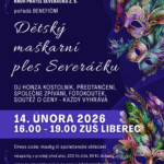 Kruh přátel Severáčku pořádá Dětský maškarní ples Severáčku, který se koná v sále ZUŠ Liberec v sobotu 14. 2. 2026 od 16.00 do 19.00 hodin.